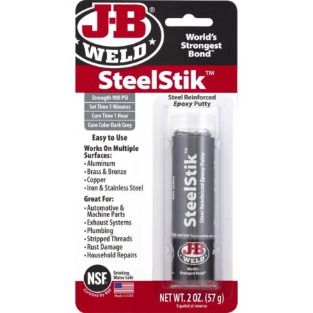 J-B Weld Syringe is the original cold-weld two-part epoxy system that provides strong, lasting repairs to metal and multiple surfaces. Mixed at a ratio of 1:1, it forms a permanent bond and can be shaped, tapped, filed, sanded and drilled after curing. At room temperature, J-B Weld sets in 4-6 hours to a dark grey color. Full cure is reached in 15-24 hours. J-B Weld has a tensile strength of 5020 PSI and sets to a hard bond overnight. It can withstand temperatures up to 550° ,when fully cured.